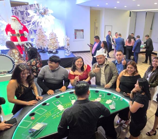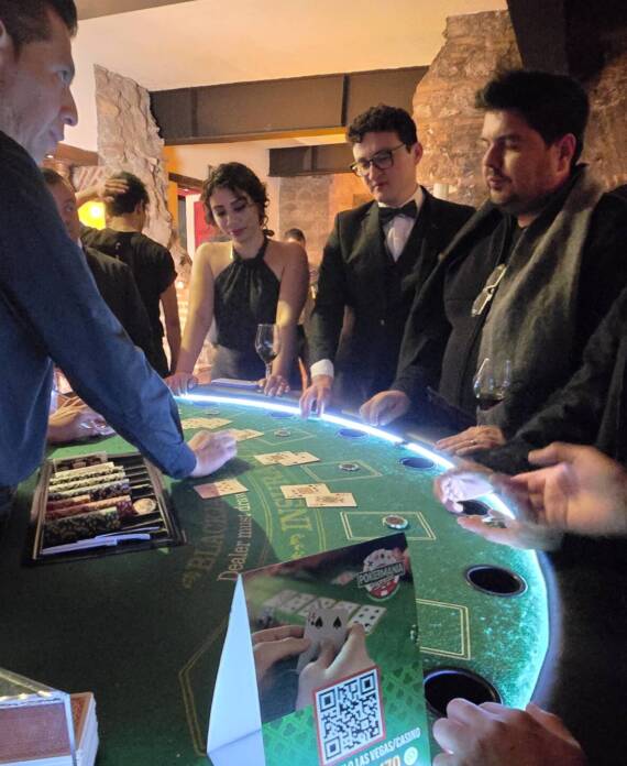 Los invitados participan utilizando fichas simbólicas y reciben acompañamiento constante de nuestro equipo, quien explica las reglas y mantiene el ritmo de la mesa. Esto permite que tanto jugadores con experiencia como principiantes puedan integrarse y disfrutar de la actividad sin dificultad.